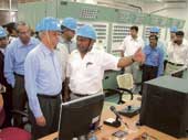 | Chairman of Atomic Energy Commission Anil Kakodkar (in blue shirt sporting helmet) talks to officials during the inauguration of the uranium ore processing plant at Turamdih. Picture by Bhola Prasad |