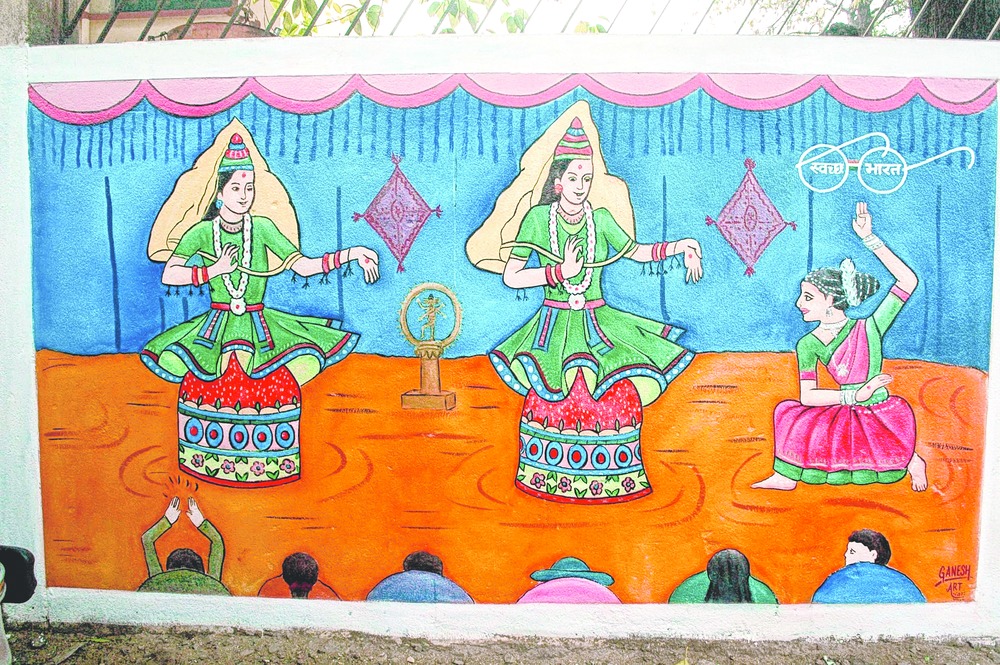 Several such theme-based paintings on issues like health, education, skill development, on Indian goddesses, traditional art will grace the walls of government offices soon. However, the trademark logo of Swachh Bharat Abhiyan - Mahatma Gandhi's spectacles - will prominently feature in all the paintings, which will either be in the Sohrai style, a tribal art, or in modern style.