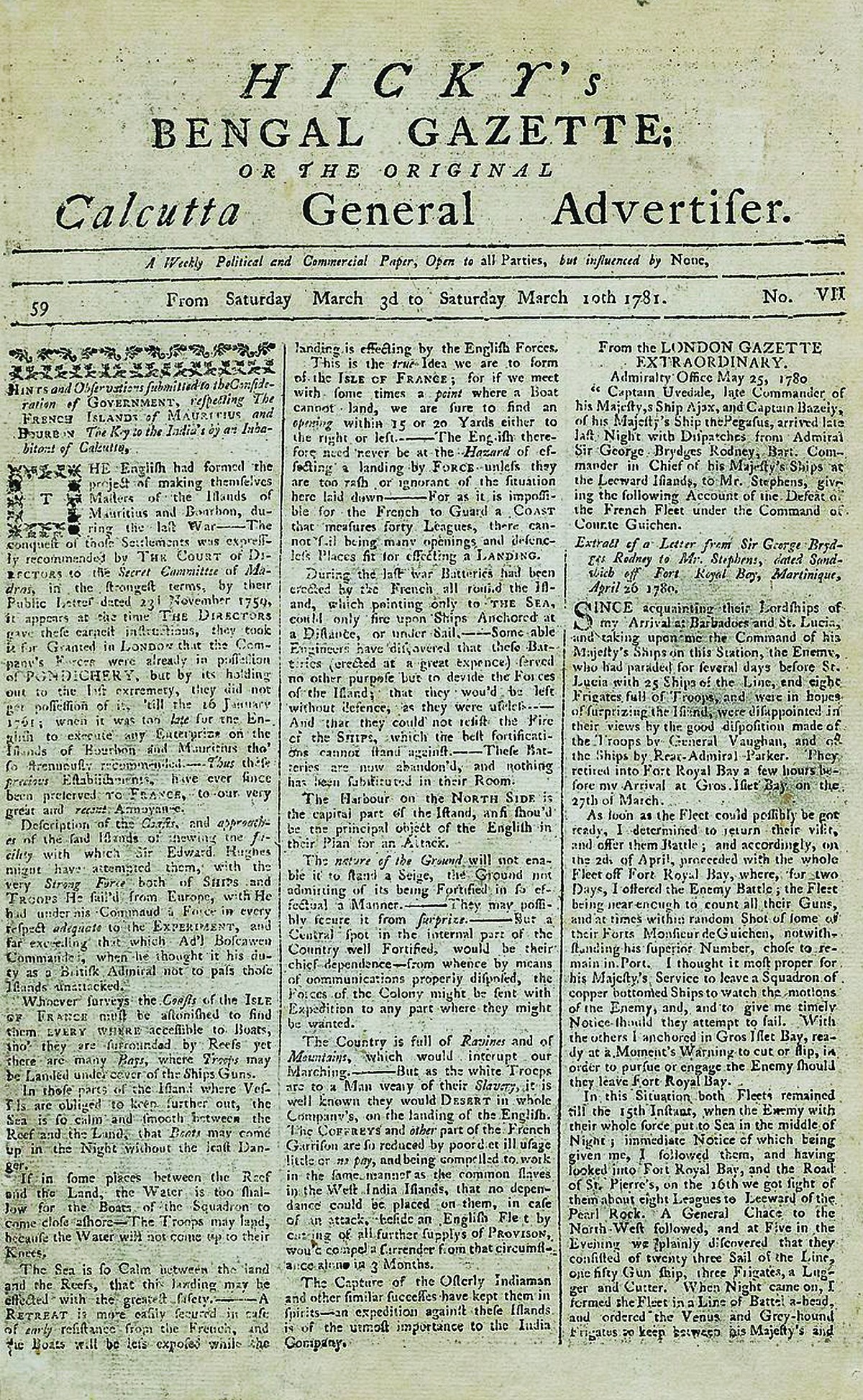 Andrew Otis's Hicky's Bengal Gazette: The Untold Story of India's First Newspaper is a page-turner of a book that charts the newspaper's two-year history. With his gazette, Hicky took on the mightiest, both the state and the church.