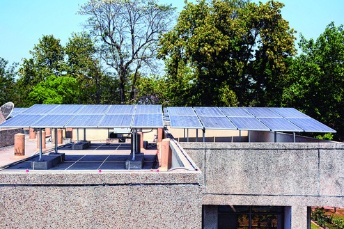 Since it is a 60-year-old building, the old campus wasn't designed for laying solar panels, but they did so whenever they could. But, the buildings at the new global campus have made most use of it. There is also a proposal to make Tata Auditorium run on solar power.