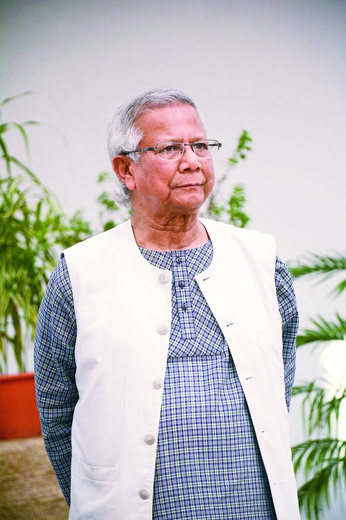 Asked for his thoughts, Yunus smiled, "I am always delighted to meet young people."