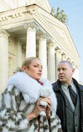 | Russian ballerina Anastasia Volochkova outside the Bolshoi Theatre in Moscow on Tuesday. (Reuters) |