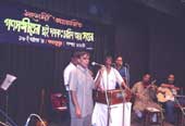 What Sahamarmi aimed at was different (Kalakunj, October 16). It attempted an evaluation, concentrating on the turbulent 1940s and the bloody 1970s to set the perspective right. Most of the performers were in fact the same people who voiced those songs when the time was pregnant with progressive ideals.