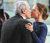 | Clint Eastwood kisses Hilary Swank after she won the best actress award for her role in his film Million Dollar Baby. (Reuters) |