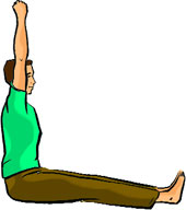 Sit comfortably with your eyes open. Imagine a rope hanging from the ceiling in front of your body. Breathing: Inhale, look up towards the rope, grip it firmly with the right hand, keeping the elbow locked. As you exhale, pull the right hand downward as if you are pulling down the rope. Keep your eyes fixed on the right hand as it moves downward. Make sure you really tighten the muscles in your arm and back. Repeat these movements with the left hand to complete one round. The arms should move alternately. Duration: Repeat 10 times. Benefits: This asana will help loosen up the shoulder and upper back muscles. It can also be done standing. | ||||