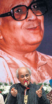 Speakers including Meera Bhattacharjee, the wife of the chief minister, author Buddhadeb Guha, poet Joy Goswami and cricketer Raju Mukherjee paid rich tributes to Mukherji before the concert began.