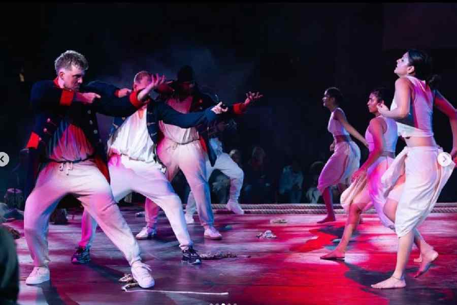 The dancers representing famine victims wore white, short tops and dhoti; their attire soiled and distressed in places. “I did not want us to be all decked up. There is nothing pretty about the story. Half naked, when we stood before those depicting the colonial power, we automatically felt the vulnerability and helplessness of the situation,” said Khayyam.
