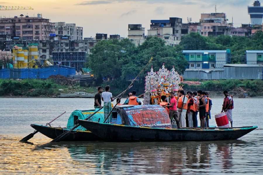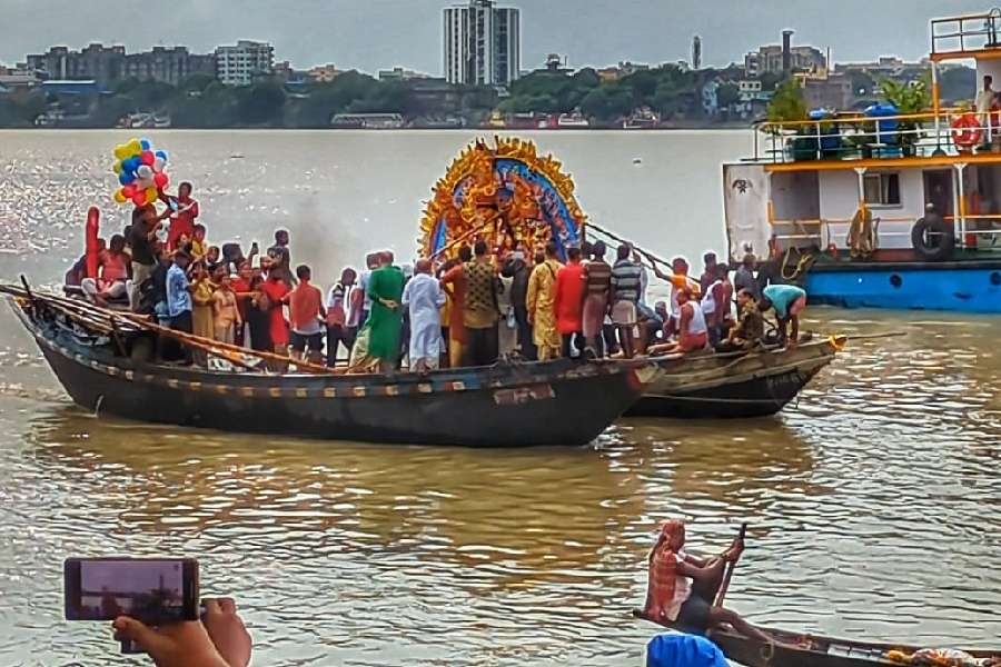 This year too, the banks of the Hooghly and other waterbodies in the city are the destination for hundreds of idols.