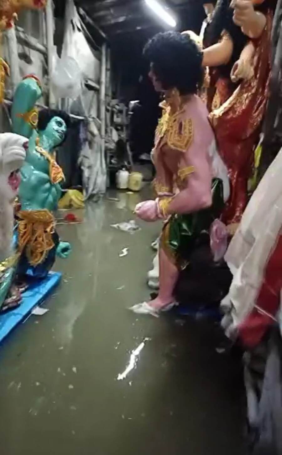 At 3am, artisan Jhantu Paul went live on Facebook to show his workshop floor underwater. “A few idols have been delivered but some are still in the studio, submerged. We don’t know what will happen now. Hope customers understand,” he said.