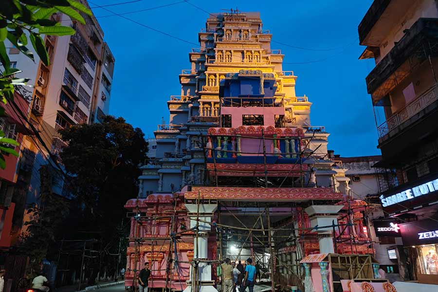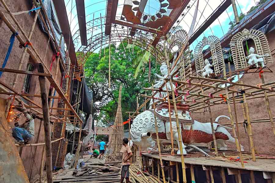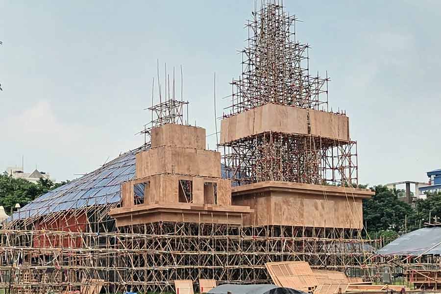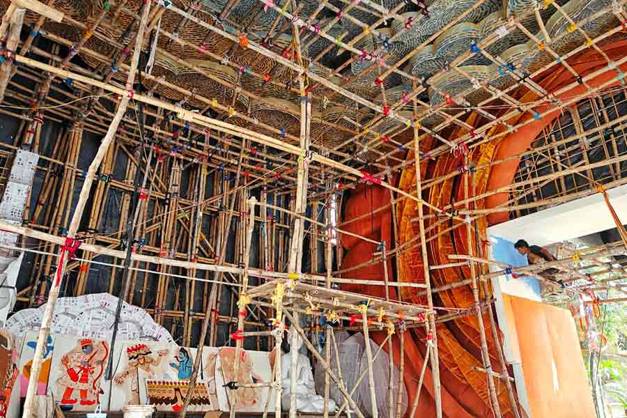 Bamboos are already holding up the structure at Singhi Park and it won’t be long before this popular pandal is filled with people admiring the aesthetics and clicking selfies