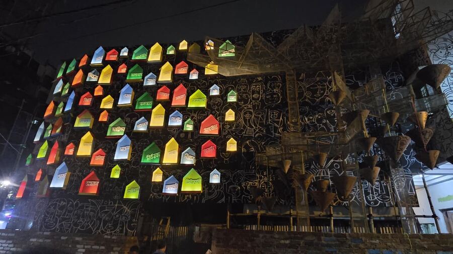 Adding to the experience, shadow artist Amar Sen will present a hand shadow performance, showing parents drifting apart, with a child caught between them. A Kalighat patachitra of a babu’s affair with a courtesan serves as a reminder that marital discord is not new to society. Last year, Roy had taken on another social taboo — menstruation — at a north Kolkata puja, underlining his commitment to using art as a tool for dialogue.