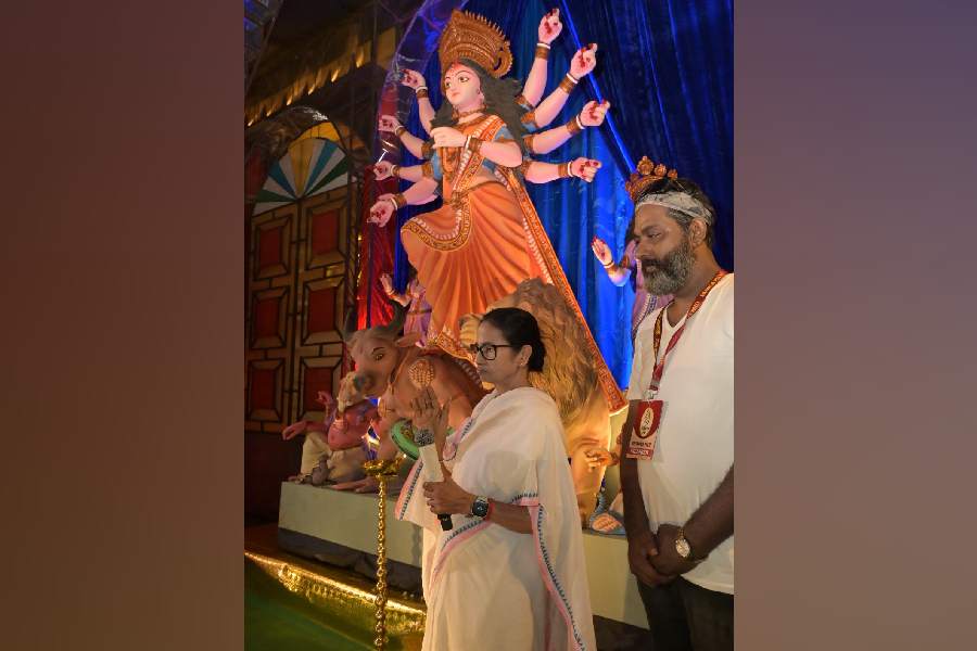 She later offered puja at Lake Kalibari and inaugurated their Durga Puja on the opposite side.