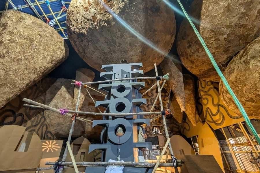 Belgachia Sadharon Durgotsab presents the theme Astitwa (Existence), crafted by artist Debotosh Kar.