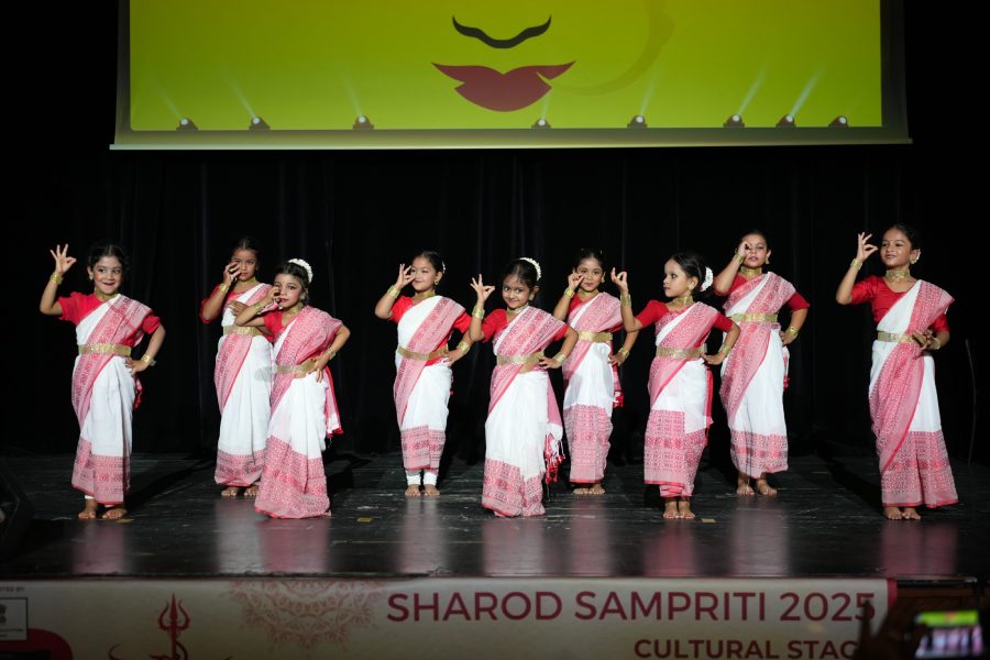 The cultural programme opened with the children’s dance on Panchami. Donned in red-and-white traditional costumes, the young performers charmed the audience, setting a joyful tone for the days ahead.