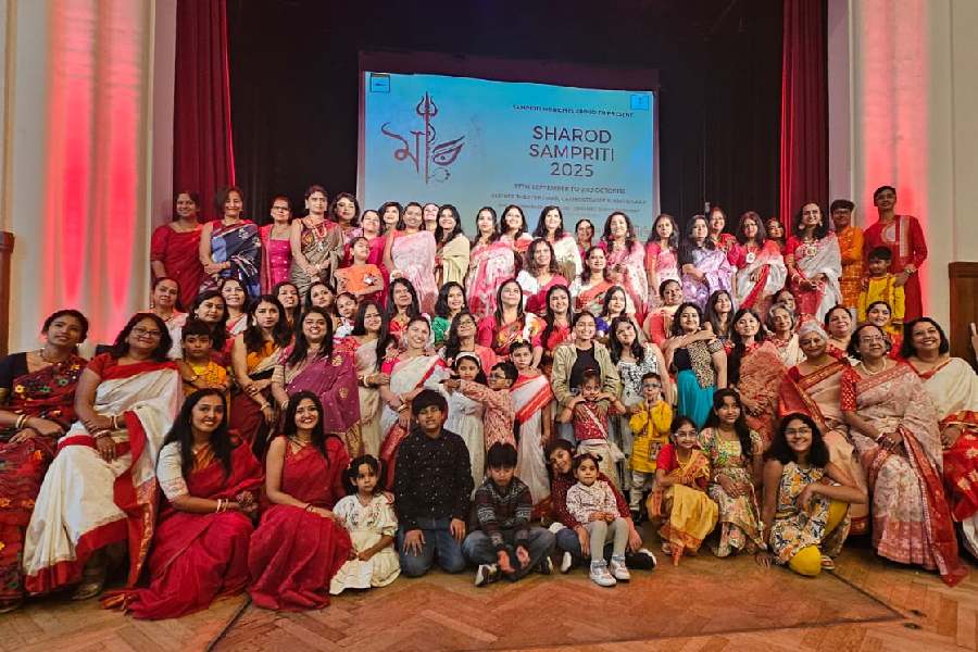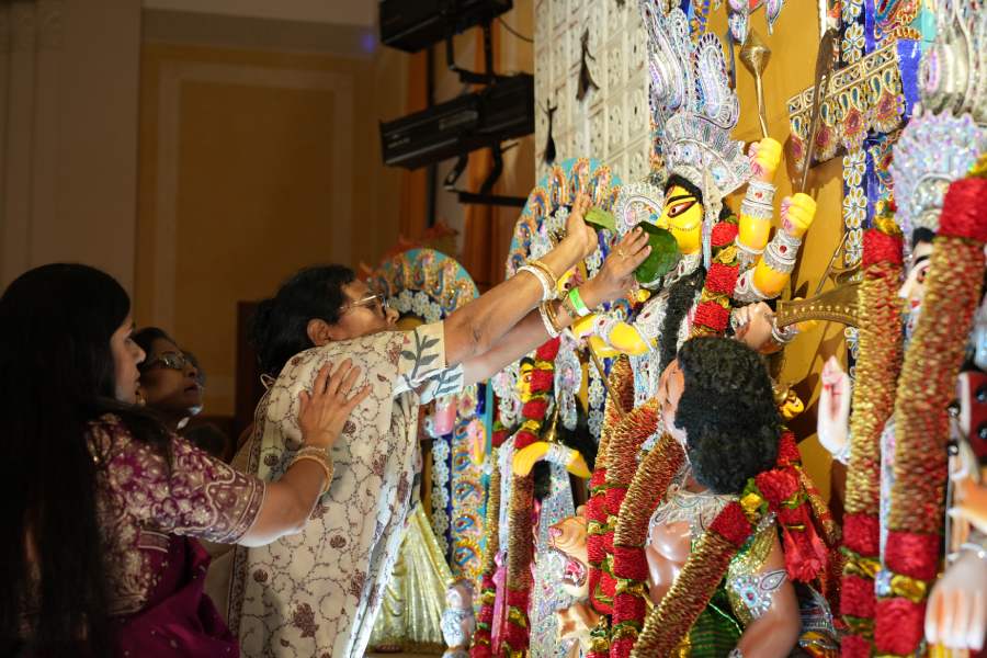 The Thakur boron on Sasthi evening carried the fragrance of home. Devotees offered bel pata and dhuno, invoking Ma Durga’s presence in a Bavarian autumn. “Amidst the rhythmic cadence of dhaak and the sacred swirl of dhuno, I found myself enveloped in nostalgia,” shared Niti Chowdhury, a new member.