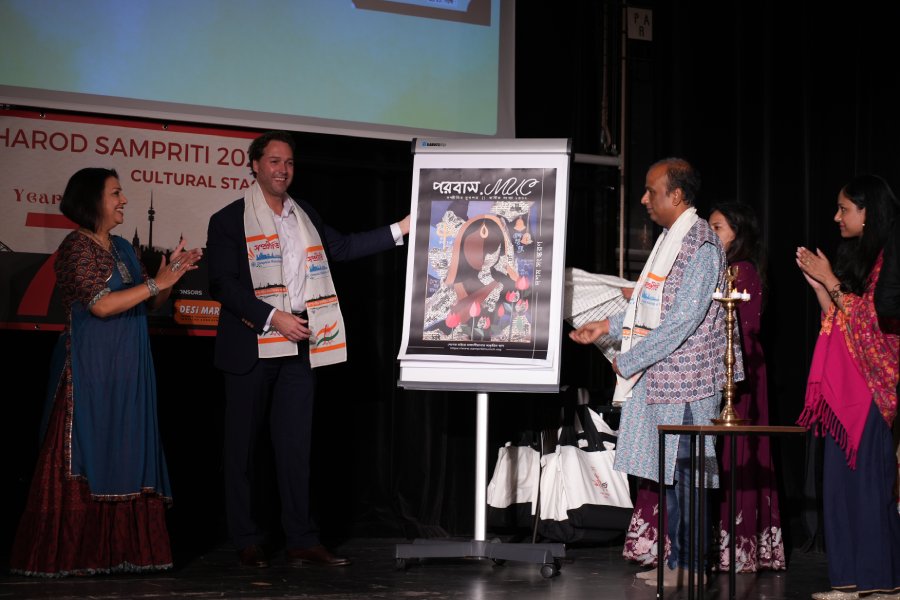 The celebrations began on Sasthi with a formal inauguration. The Honourable Mayor of Haar and the Consul General of India, Munich, joined community members to launch Sampriti’s in-house magazine — a vibrant collection of travelogues, recipes and personal stories. The moment set the tone for a festival that blended tradition with cultural creativity.
