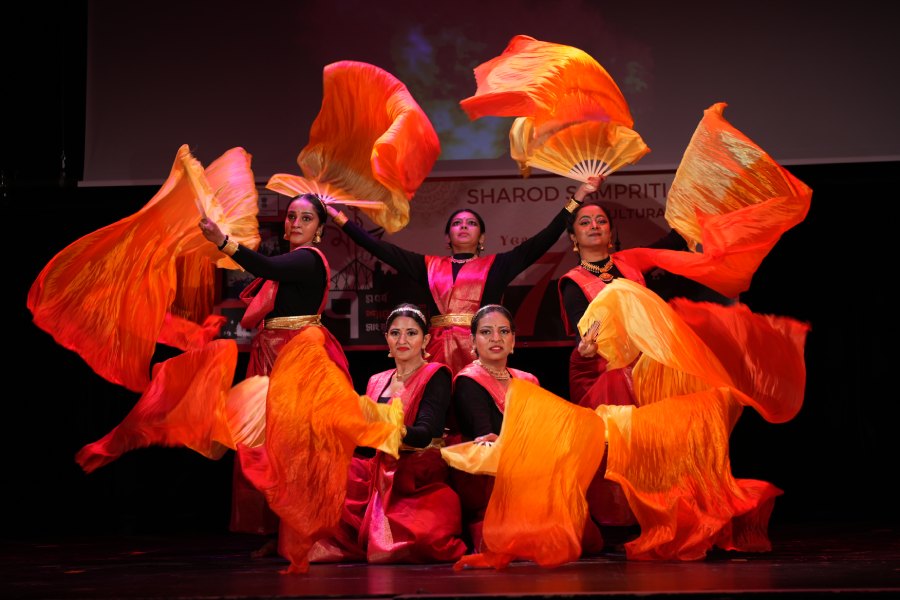 The women’s dance troupe delivered a spellbinding performance titled Elements of Nature, blending grace and power through flowing orange and yellow fans. Their synchronised choreography earned a standing ovation from the crowd.