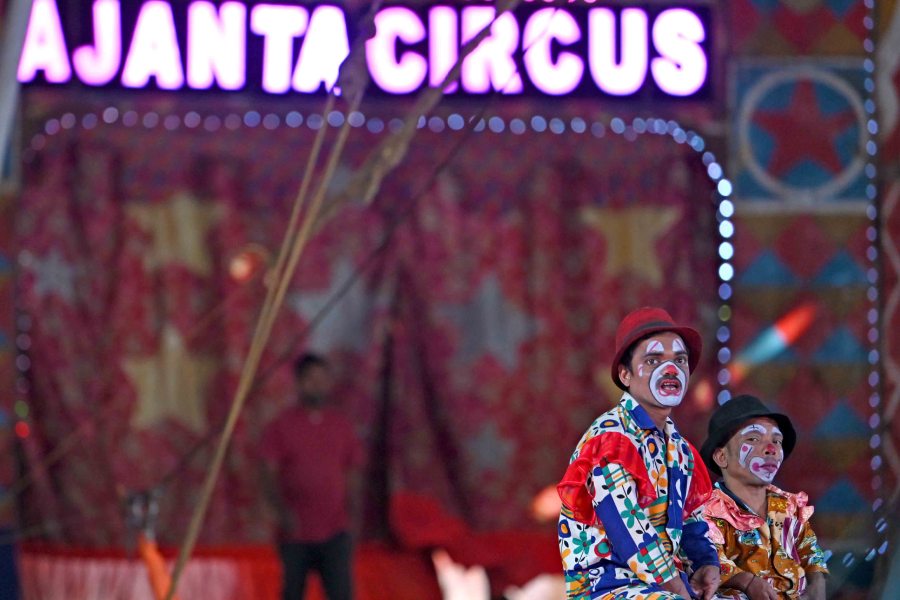 Jiarul Haq, a 35-year-old clown from a village in Assam, sat inside the ring and enjoyed the various acts with a fellow ‘joker’.