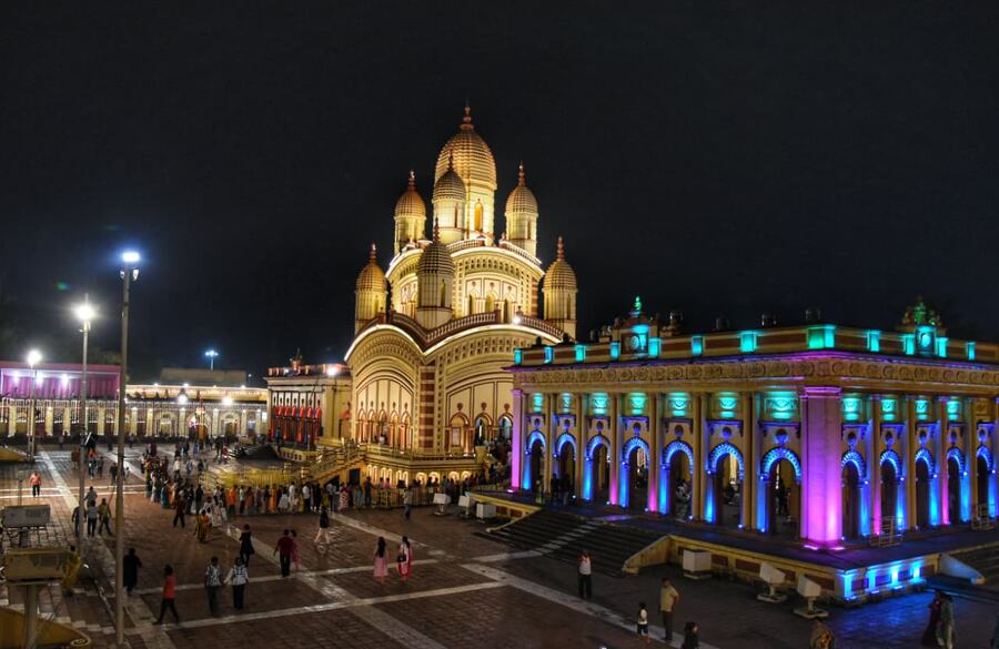 Dakshineswar Temple shines in a breathtaking display of lights and symmetry.