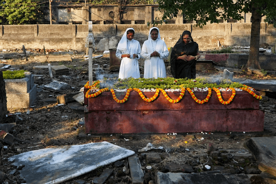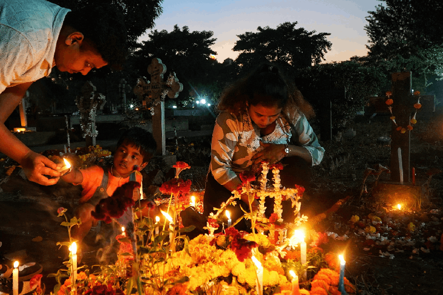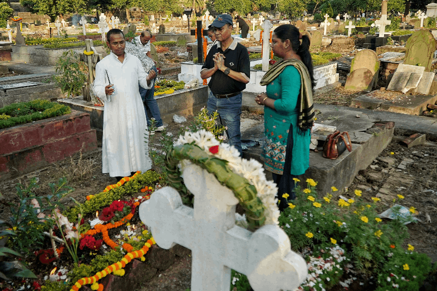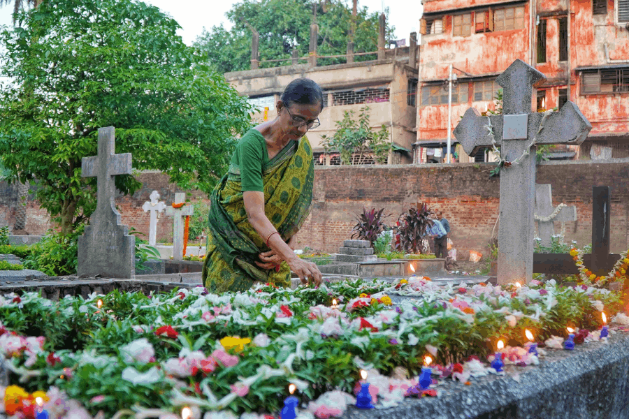 As dusk settles over the Lower Circular Road Cemetery, a family gathers in prayer before a grave lit by candles — a scene that captures the spirit of All Souls Day, when Kolkata’s Christian community comes together to remember and pray for departed loved ones with faith, light and quiet reflection.