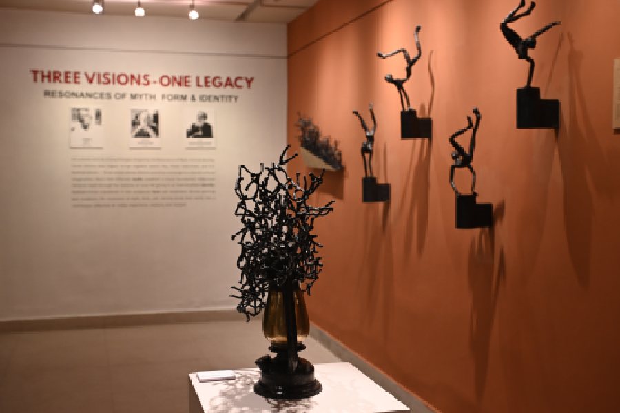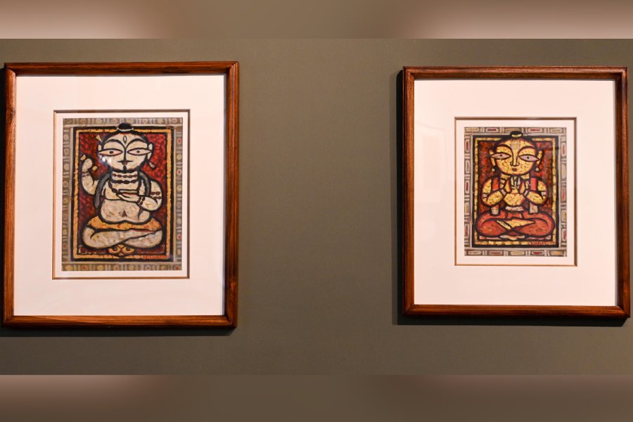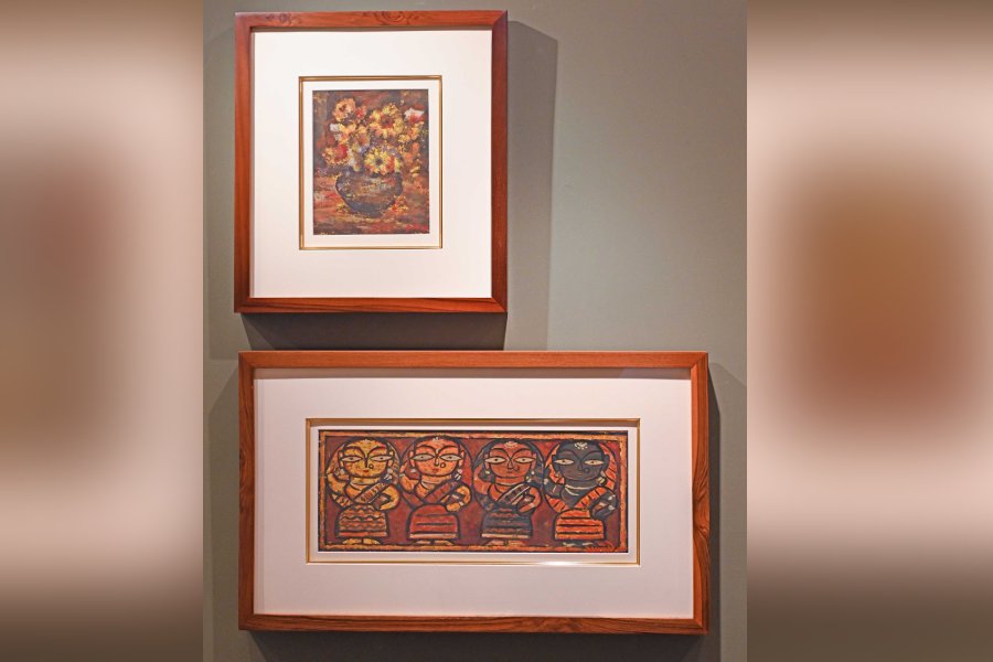 Gallery Kolkata, at 41, Shakespeare Sarani, is currently hosting ‘Three Visions – One Legacy: Resonances of Myth, Form & Identity’, an exhibition featuring works by artists Jamini Roy, Thota Vaikuntam and KS Radhakrishnan. On show till March 7, the exhibition brings together three Indian artists from distinct regions and timelines.