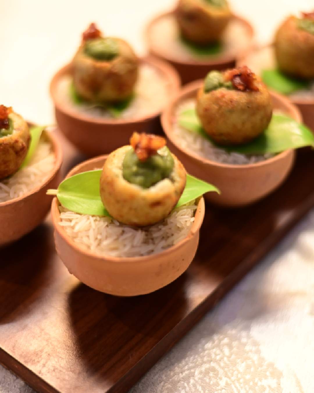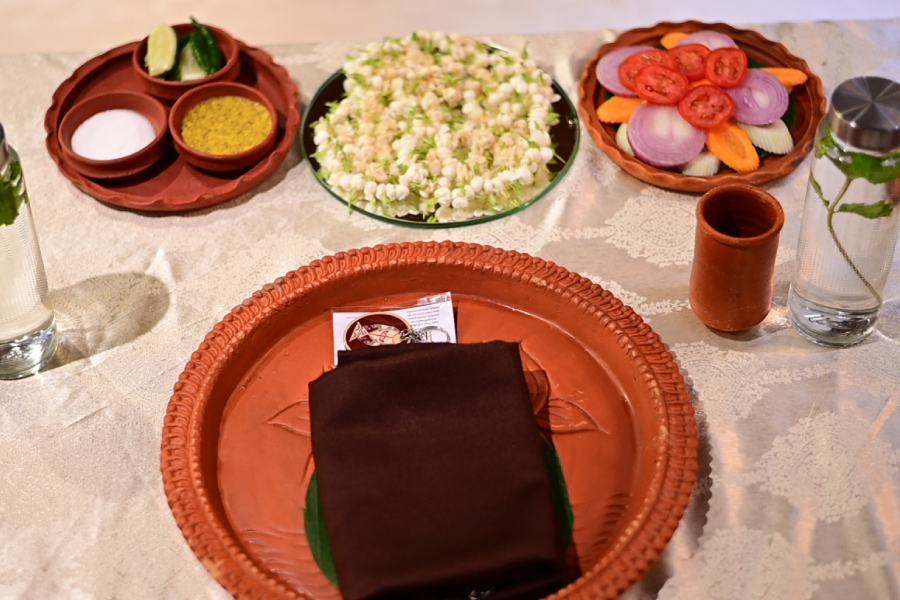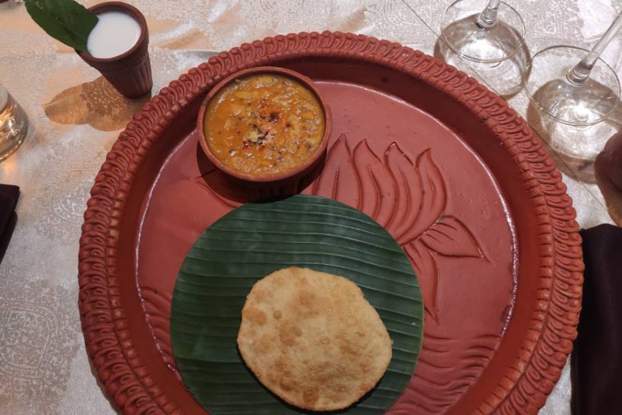 Food was served on maatir thala, evoking the essence of a traditional Bengali meal.