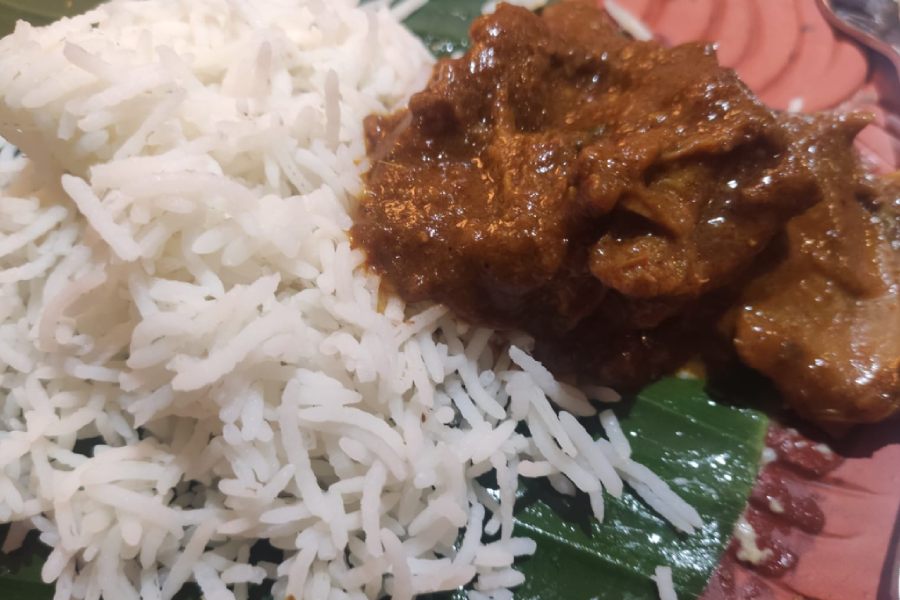 The main course featured plain rice, Kalibari bhog er mutton and Thakur barir chingri makha (prawns), paired with wines curated to complement each dish.
