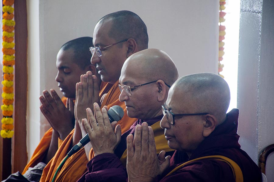 It comprised a series of prayers and chanting ceremonies from different sects of Buddhism (monks take part in the celebrations in picture). The event was attended by representatives of different Buddhist sects from Kolkata and beyond. These included the Mahabodhi society, Fo Guang Shan Temple and many more. The ceremony included prayer session from the Teravada (previously known as Hinayana) monks and Tibetan Lamas.