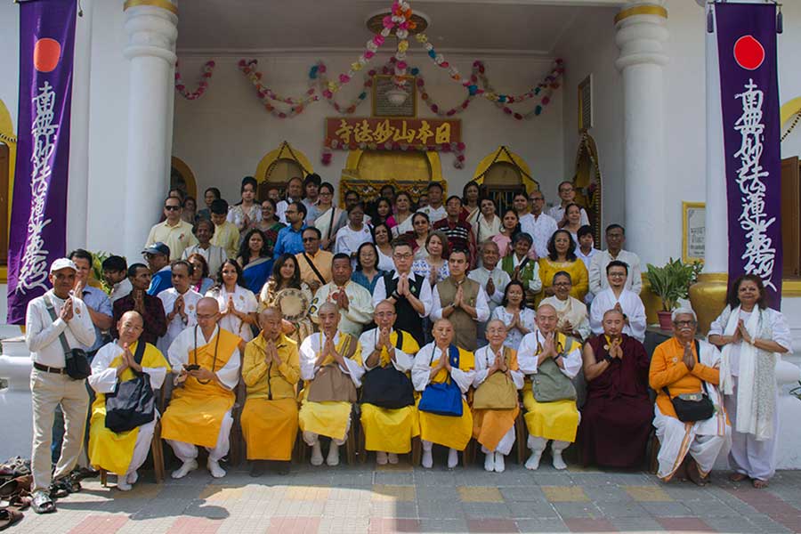 It ended with a blessing ceremony of the participants. The participants (monks, devotees, participants and volunteers pose at the steps of Japanese Buddhist Temple on the occasion of its 90th birthday) included several dignitaries from the consulates of Thailand, Myanmar and US in Kolkata. The small hall of the temple was jampacked with devotees and some of them had to take their seats outside the hall. The chanting, along with the beats of the drums and cymbals, created a mesmerising atmosphere.