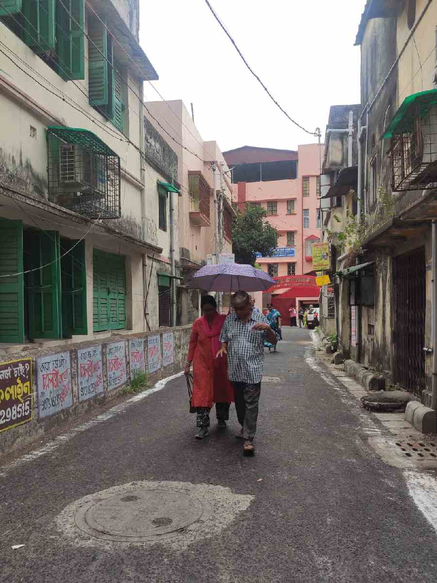 Voters with umbrellas at Shyampukur