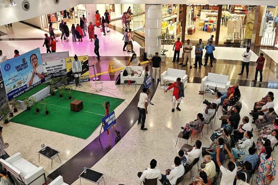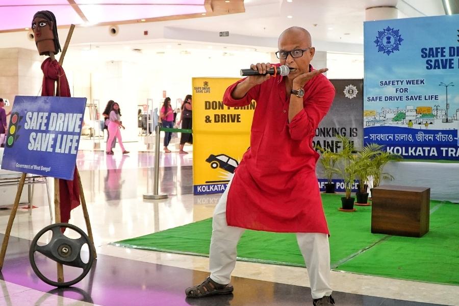 As part of the awareness campaign, the Jadavpur Traffic Guard staged a play at South City Mall, drawing a crowd of onlookers who were seen enjoying the performance. The interactive event conveyed important safety messages in an engaging format.