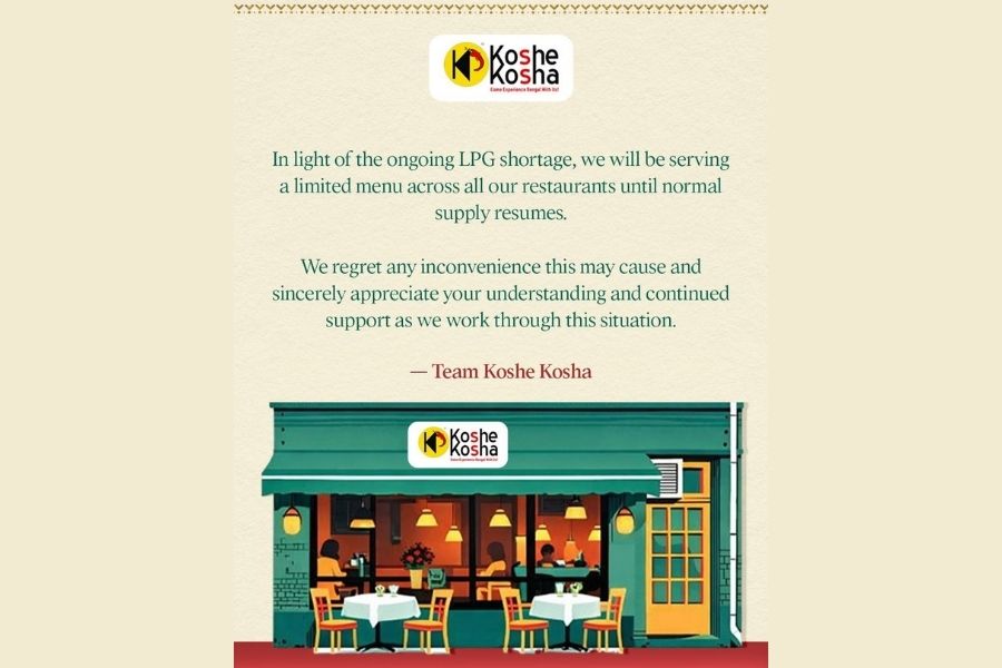 Koshe Kosha has also moved to a restricted menu. “In light of the ongoing LPG shortage, we will be serving a limited menu across all our restaurants until normal supply resumes,” the team said in a statement.