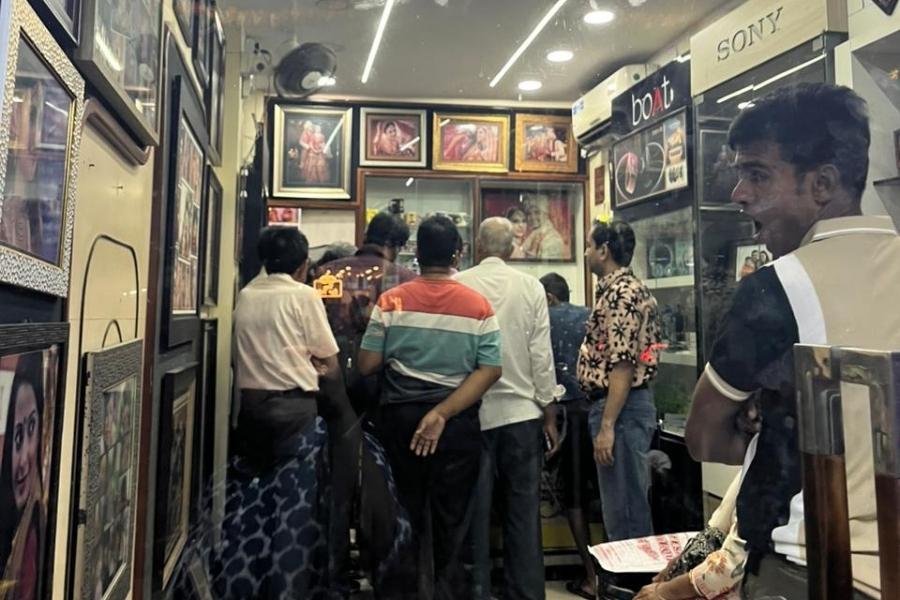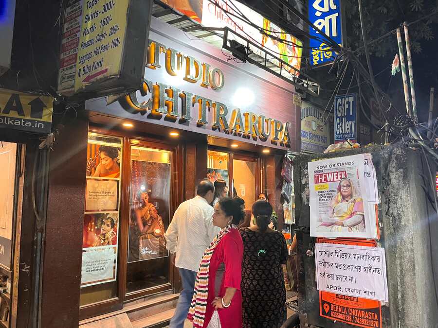 “I cannot talk now,” snapped a breathless shopkeeper at Chitrarupa Studio in Behala Chowrasta on a busy Friday evening, balancing a pair of scissors and a line of impatient customers while managing the kind of crowd usually seen during the Durga Puja shopping rush.