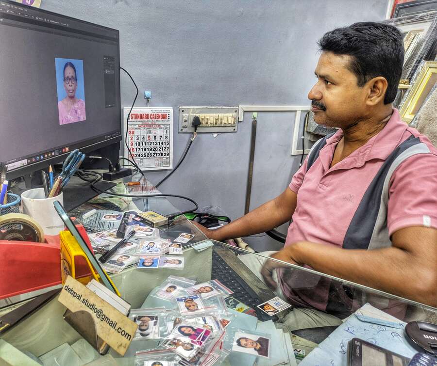 “At my studios in Baguiati, we used to print 10 or 15 passport-size photos a day. Now we are printing 400 to 500,” said Deb Kumar Pal of Deb Studios in Baguiati, his voice carrying the tired satisfaction of someone who has not sat down since breakfast.
