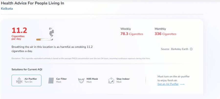 With Kolkata’s AQI shooting past 500 in parts of the city, the situation has become serious enough for doctors to advise reduced outdoor exposure, especially for children, pregnant women, the elderly, and those with existing respiratory or cardiac conditions. Masks and air purifiers, once seen as precautionary tools, are increasingly becoming essential winter gear.