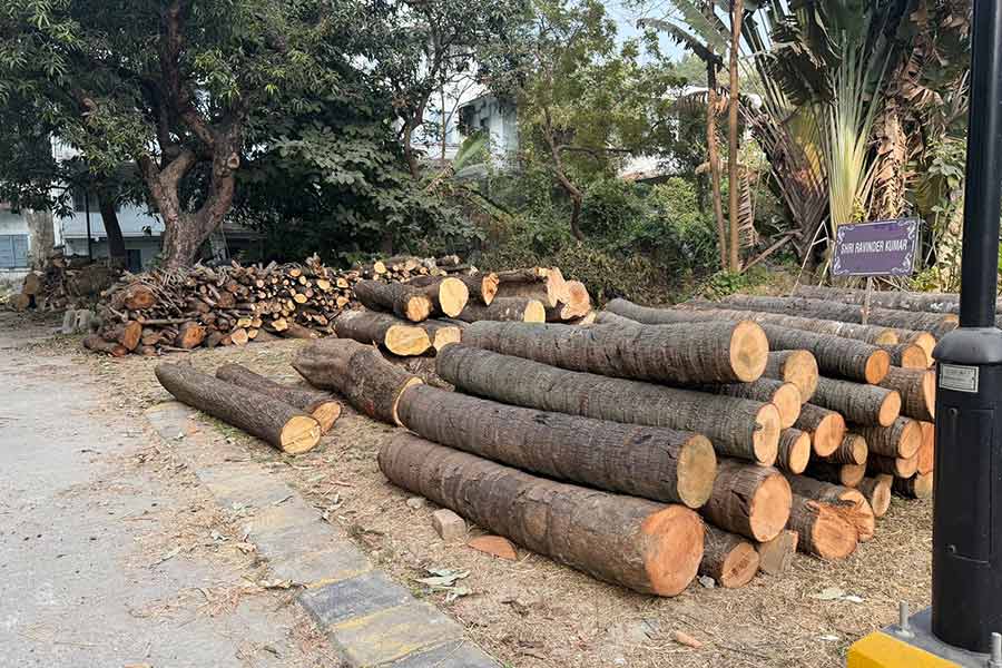 Alliance Française du Bengale director Nicolas Facino, KIFF chairman Goutam Ghose, KIFF chief adviser Aroop Biswas, festival co-chief adviser Indranil Sen, state forest minister Birbaha Hansda and actor Arjun Chakraborty unveil the Golden Royal Bengal Trophy for the 30th edition of the Kolkata International Film Festival at a news meet on Friday. Information and cultural affairs secretary Santanu Basu looks on at the far left end. The film festival will be held from December 4 to 11