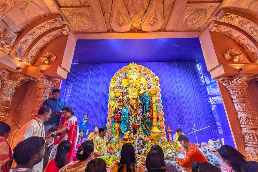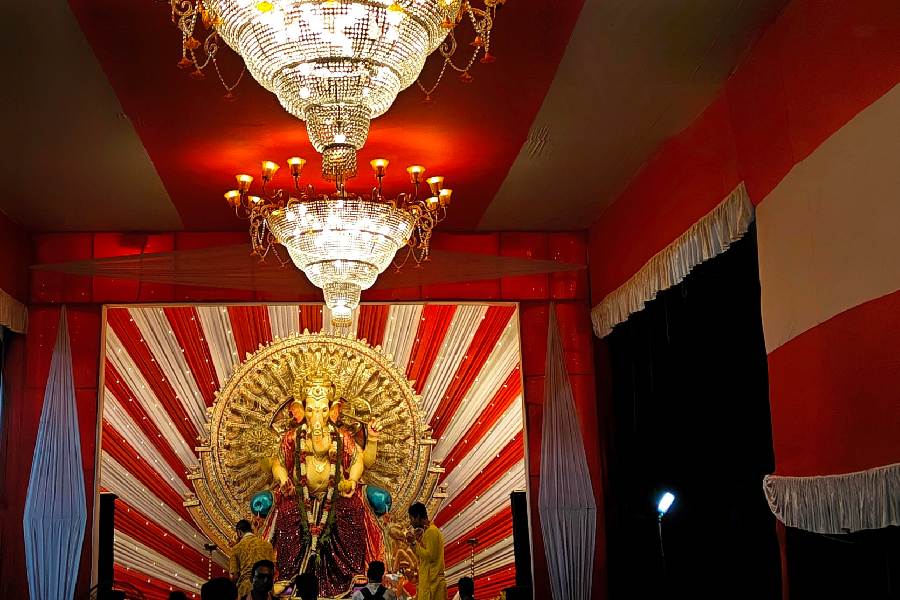Indian armed forces’ recent Operation Sindoor against Pakistan was the theme for a Ganesh Pandal in Baguiati. Titled Veer Ganesha — Raksha ke Devta, the pandal at Executive Palace Complex in Baguiati offered tribute to martyrs.