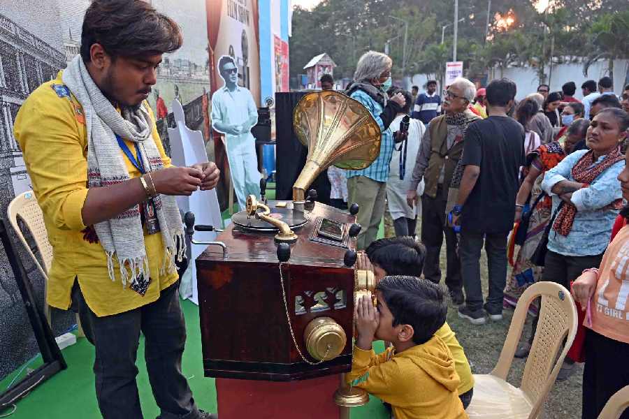 Hindusthan Records and its publishing arm, Hindusthan Music Publishing, are participating in the Kolkata book fair for the first time this year. At Stall 134, visitors can go through comprehensive biographies of legendary musicians alongside rare vinyl records of songs by Kishore Kumar and Debabrata Biswas. The collection also includes pen drives loaded with Bengali classics, early recordings of Rabindranath Tagore’s songs, CD packs of Antara Chowdhury’s children’s music and more.
