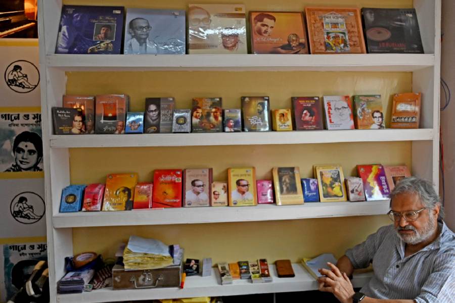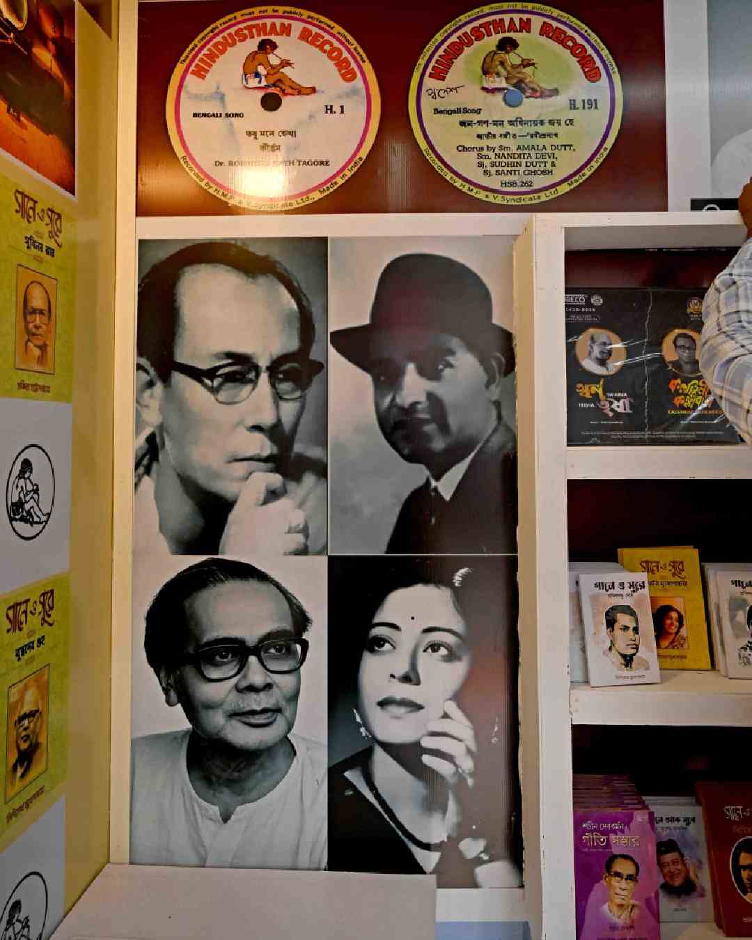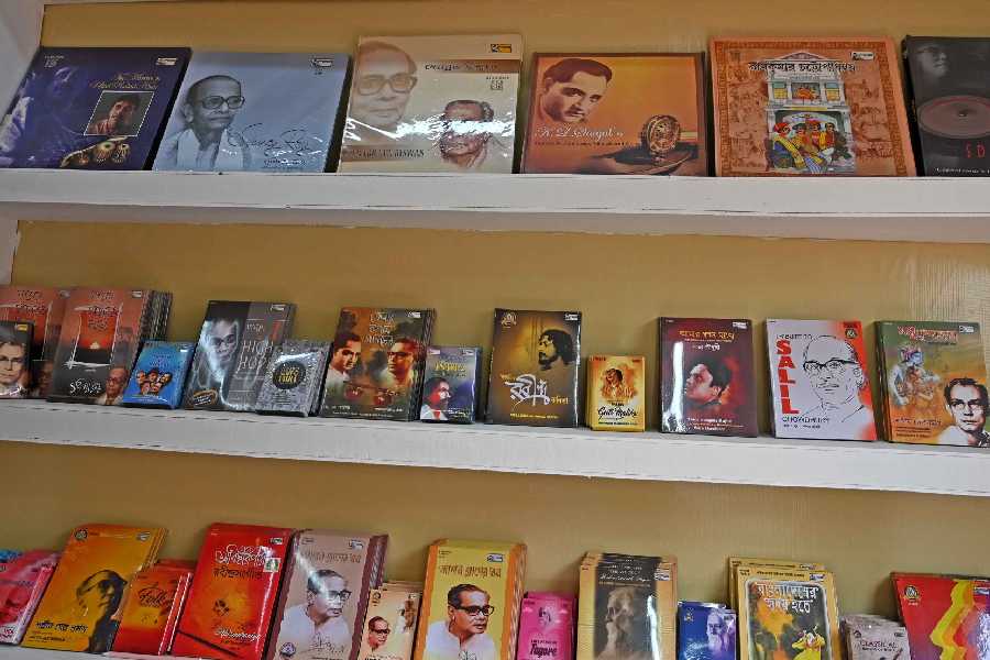 At the fair, vinyl records of Kishore Kumar and Debabrata Biswas, pen drives featuring vintage Bengali classics, and CDs of Antara Chowdhury’s children’s songs have drawn music lovers from across generations.