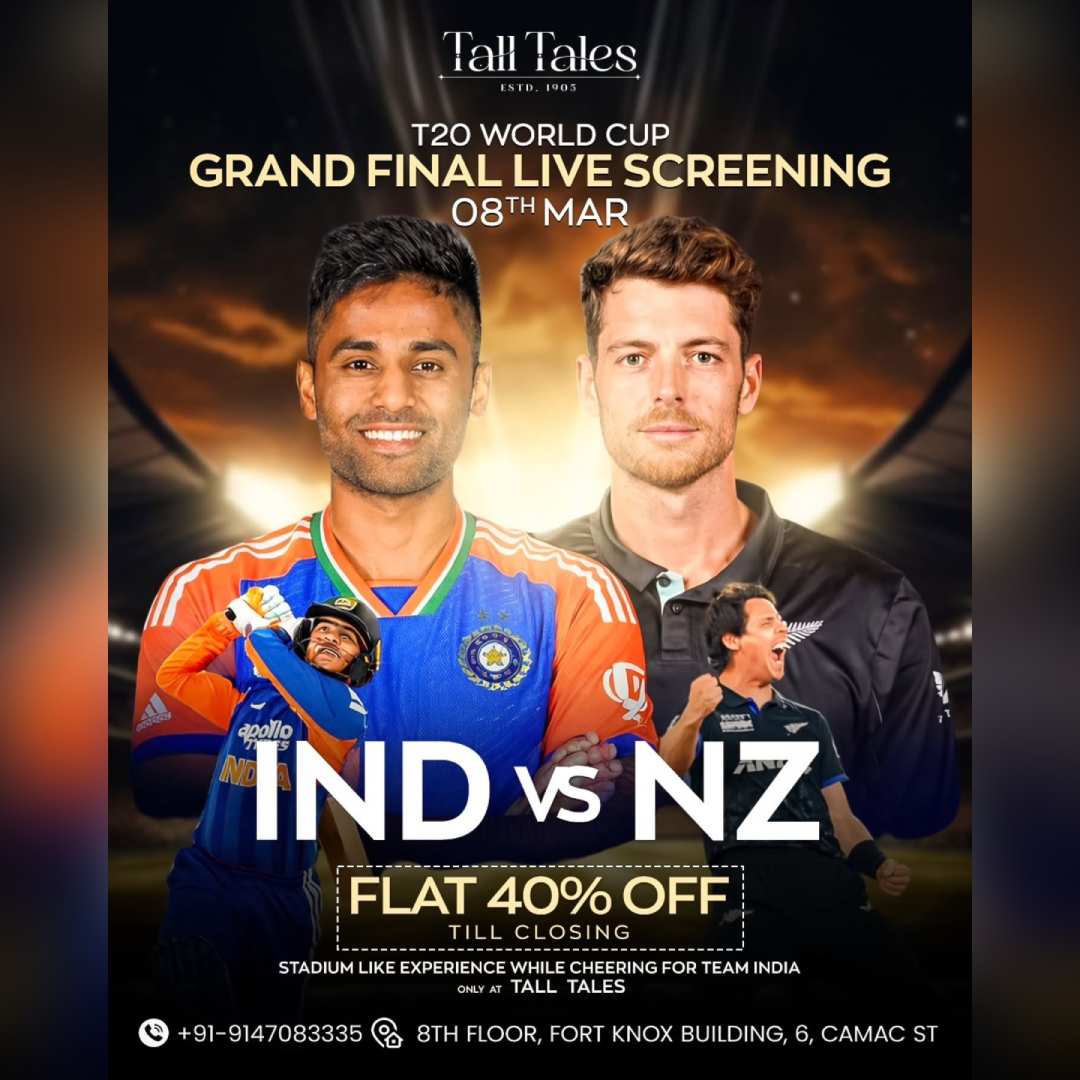 It’s a day of double celebration. Not only is it International Women’s Day, but it’s also a cricketing D-Day as Team India and New Zealand gear up for the T20 World Cup 2026 final at Ahmedabad’s Narendra Modi Stadium. Ahead of this iconic showdown, My Kolkata has curated a list of pubs and venues where you can savour great food and drinks while watching captain SKY and teammates give it their all on the field.