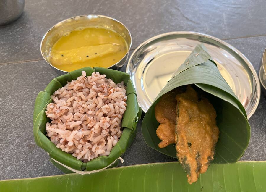 After the mandatory chutney and papad, came the desserts promoting Bengal’s Taal Gur. A white mishti doi topped with liquid tal-er gur from North 24-Parganas and Badshahbhog Chal-er Payesh. As the seasonal palm gur put a sweet ending to the meal, it highlighted that Nolen Gur isn’t the only Gur of Bengal.
