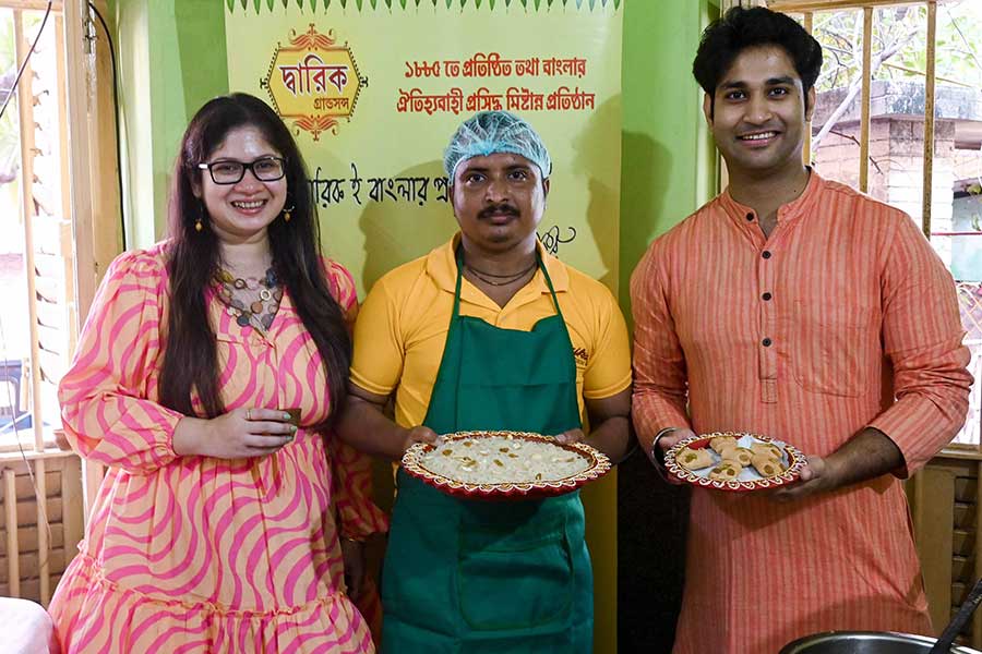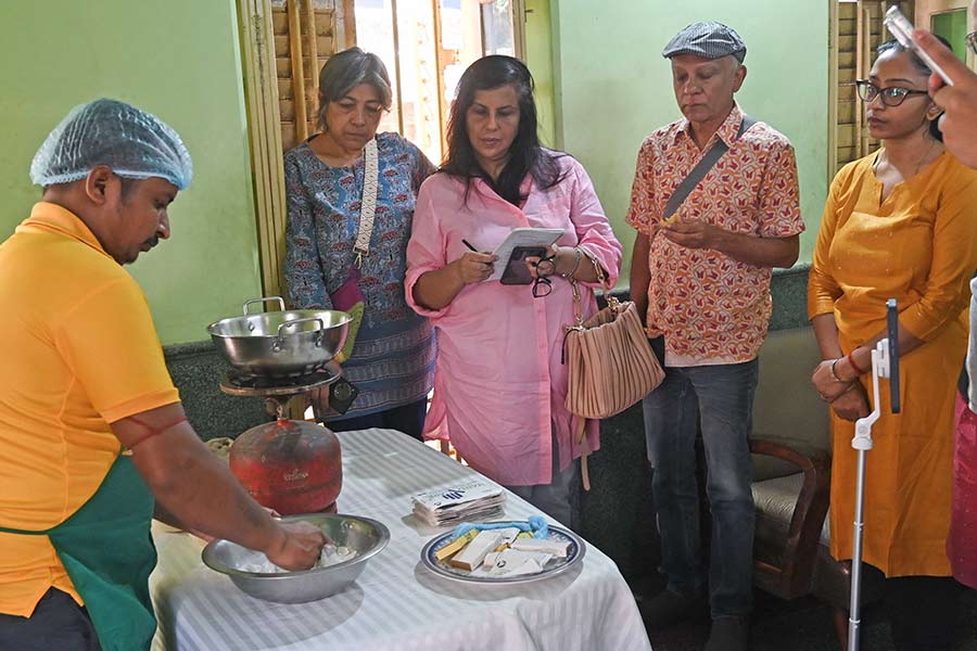 Third-generation owner Rohit Raj Ghosh has put the initiative together in collaboration with Immersive Trails Global. He began the morning by speaking about the changing landscape of the mishti industry. “With changing times, you will find that the labour market in the sweet-making sector has gone down. The demand has gone up, but the supply of labourers is a problem. That is why I wanted to create this workshop and revive the recipes of the bygone era,” he said.