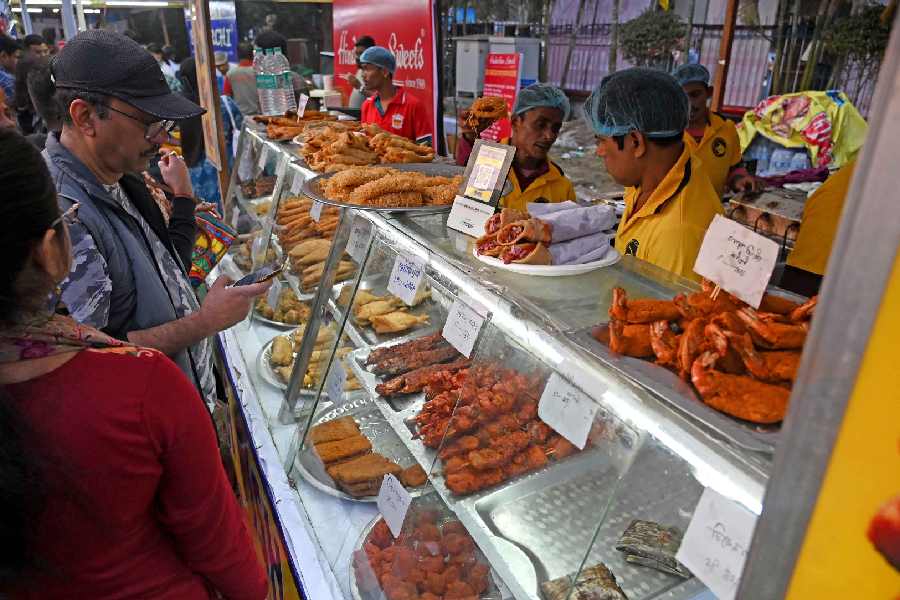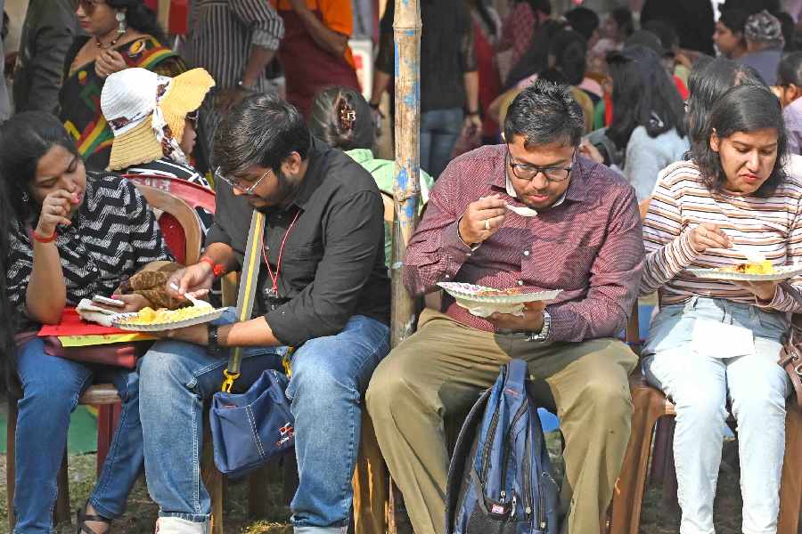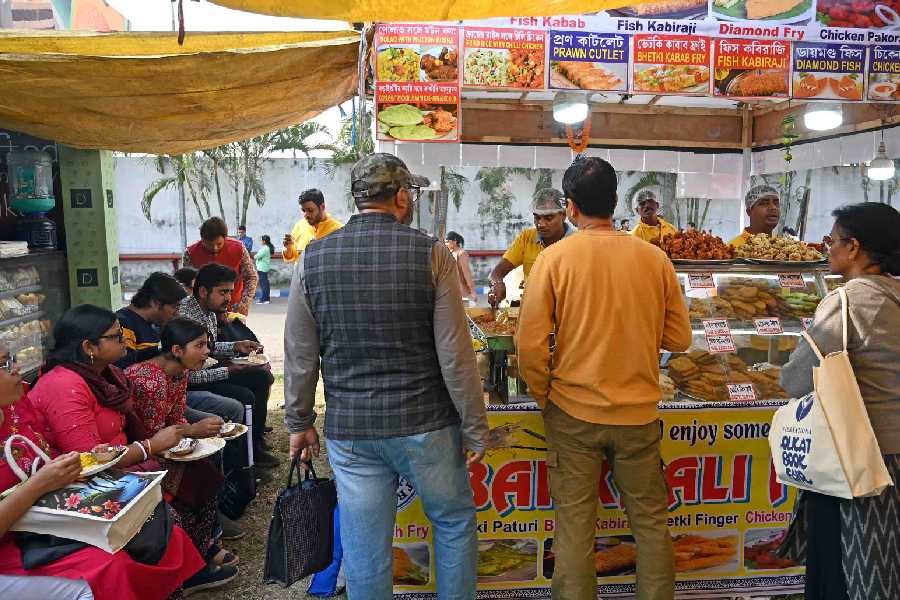 At the 49th International Kolkata Book Fair at Boimela Prangan in Salt Lake, bibliophiles doubled up as foodies. After browsing stall after stall for titles on their wish lists, visitors headed to the food section of the fairground to refuel themselves before another round of book-hunting.