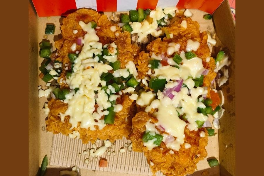 A crispy fried chicken base came topped with cheese and veggies. However, as the crowd turned to a healthier lifestyle, this fusion seemed like a sin.