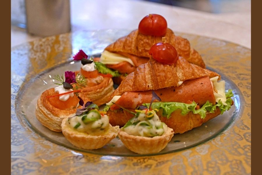 The savoury spread featured vol au vent au saumon fumé, tarte aux asperges and croissant au jambon et au fromage, complemented by selected teas, coffees and juices.