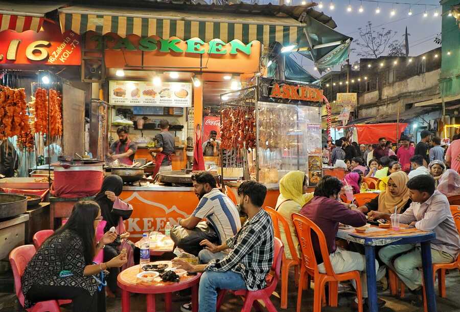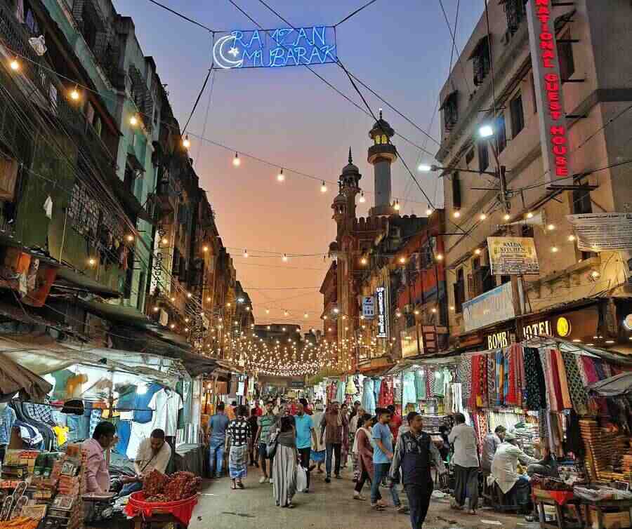 The north Kolkata neighbourhood’s streets are lit up and, the neon green sign wishing visitors and residents ‘Ramzan Mubarak’ is back on