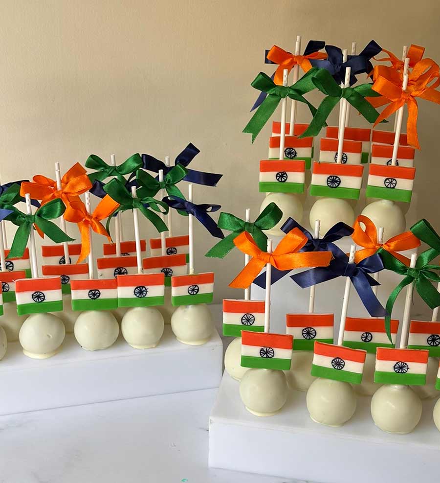 Sweeten your celebrations with Tricolour-themed chocolate cake pops from Soups Cake Co. Rich, chocolate-dipped, and decorated in the shades of the National Flag, each bite is a blend of indulgence and patriotism. Perfect as a festive treat or a thoughtful Independence Day gift.