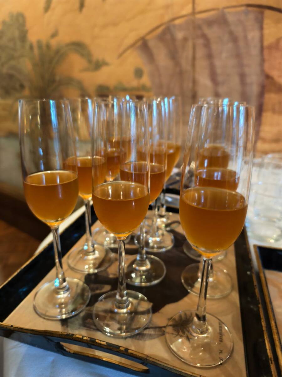 The evening began with a Huangjiu Spritzer, a Hakka rice wine rooted in over 2,000 years of tradition. Made with glutinous rice from Shillong and yeasts from Darjeeling, Kalimpong and China. The aroma and taste of the Hakka rice wine, crafted by chef Katherine Lim using her heirloom recipe, was reminiscent of caramel with soft notes of toasted rice and a mellow sweetness that lingered on the palate.