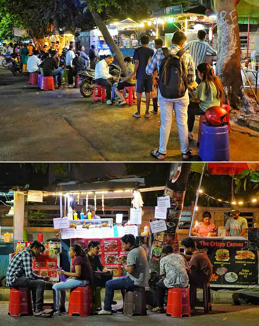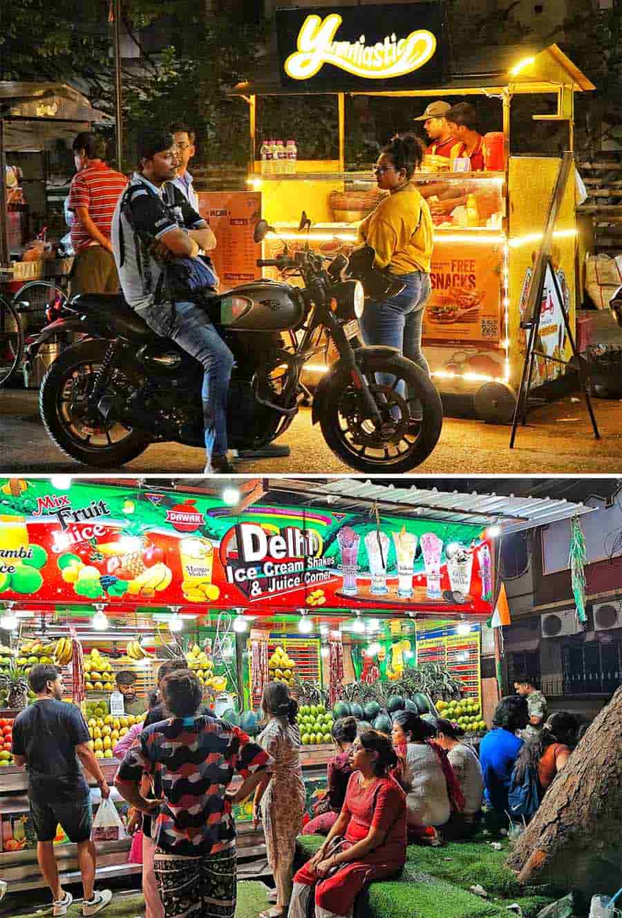 If you’re on a date or just hanging out with friends or even if you need a quick snack after a long day, then stop here. With a few juice stalls in the vicinity, you can always grab a fresh drink or shake as well, the best way to beat the relentless heat.
