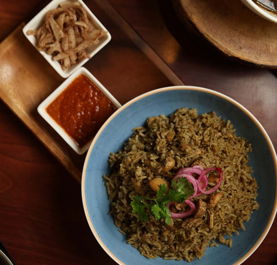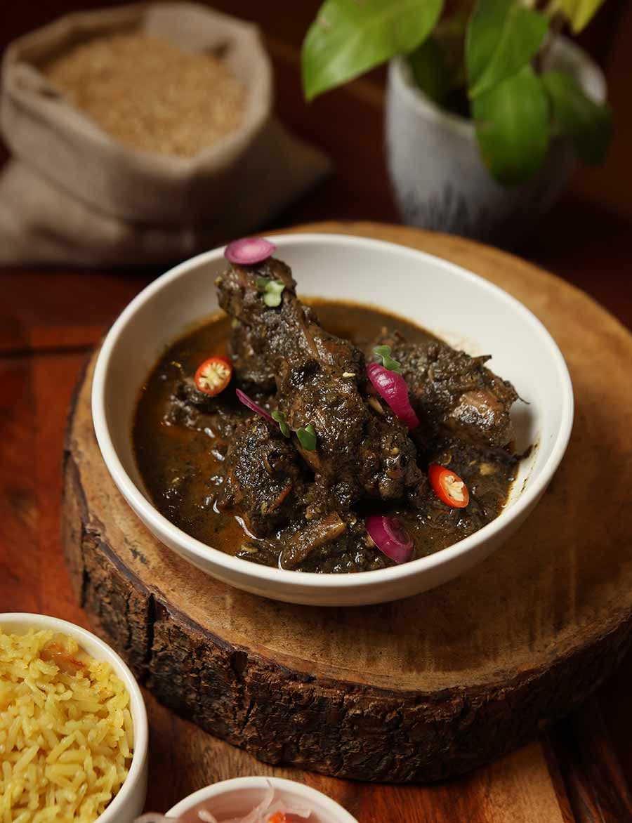 One of the standout dishes is Doh Syiar Neiiong, where chicken is slow-cooked with black sesame paste. The nutty, smoky flavour of the sesame is comforting, revealing a signature element of Khasi cooking, which uses local ingredients to their fullest potential. Another crowd favourite is the Doh Sniang Roast. This sliced roasted pork dish is all about balance. The tender meat, crisp edges, and just the right amount of fat make it melt in your mouth without being overpowering.